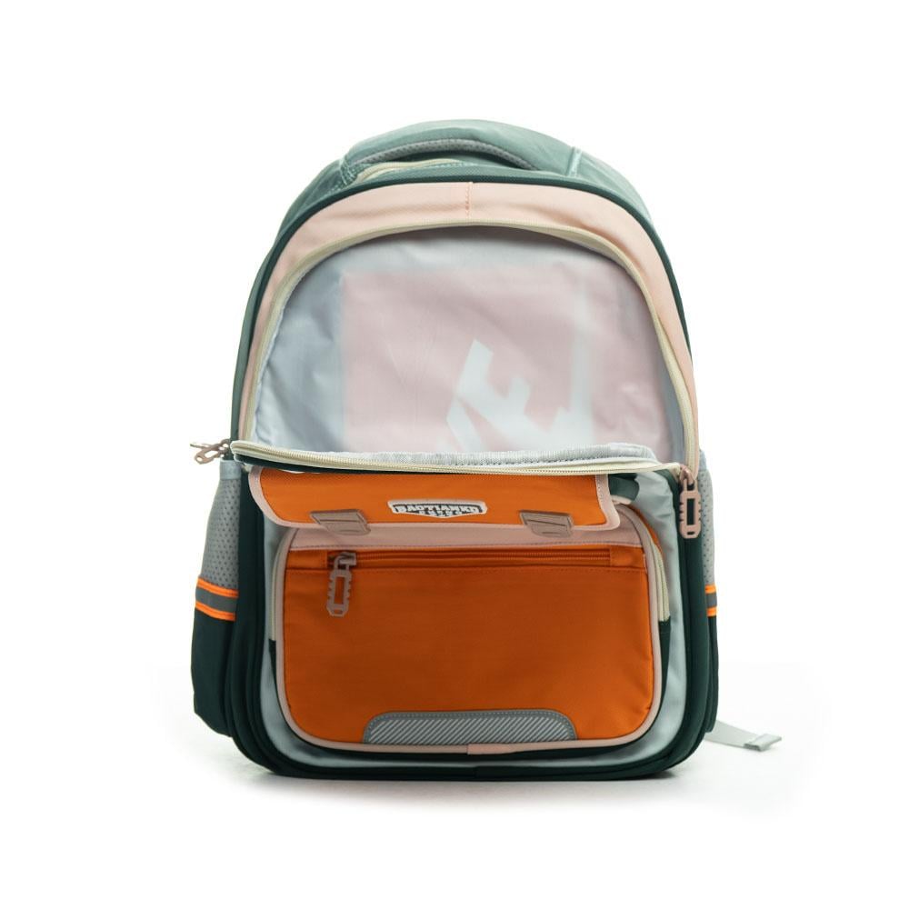 • جيب مزدوج مع جيبين أماميين، أحدهما مزود بمنظم للأقلام ومساحتين بأحجام مختلفة.