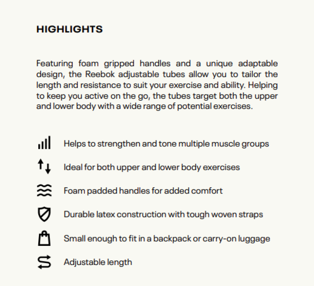 تعتبر أنابيب المقاومة من Reebok مثالية للاستخدام أثناء التنقل أو في المنزل أو أثناء السفر، حيث تتيح لك استهداف الجزء العلوي والسفلي من الجسم دون الحاجة إلى معدات ضخمة أو مرهقة. وبفضل حجمها الصغير الذي يناسب حقيبة الظهر أو حقيبة اليد، تساعدك الأنابيب على تقوية وتقوية العضلات من خلال مجموعة ضخمة من خيارات التمارين الديناميكية.