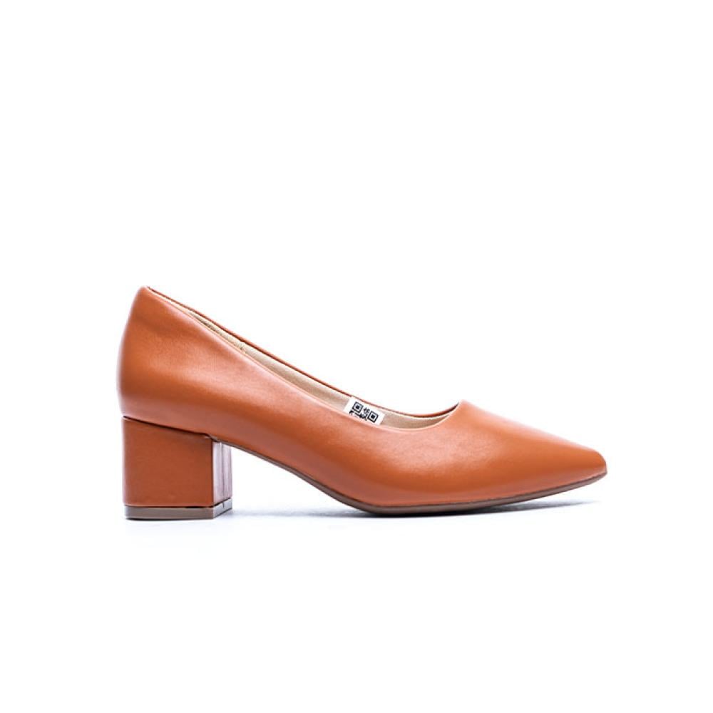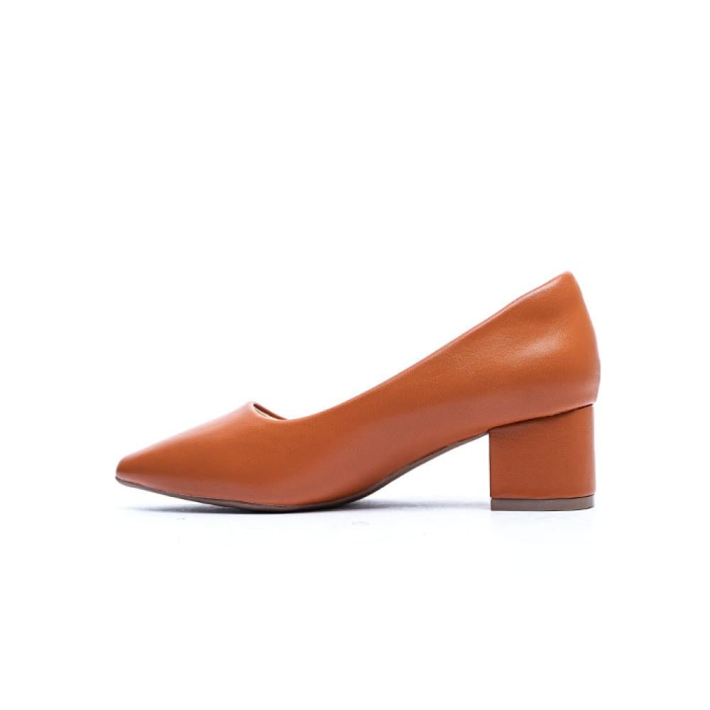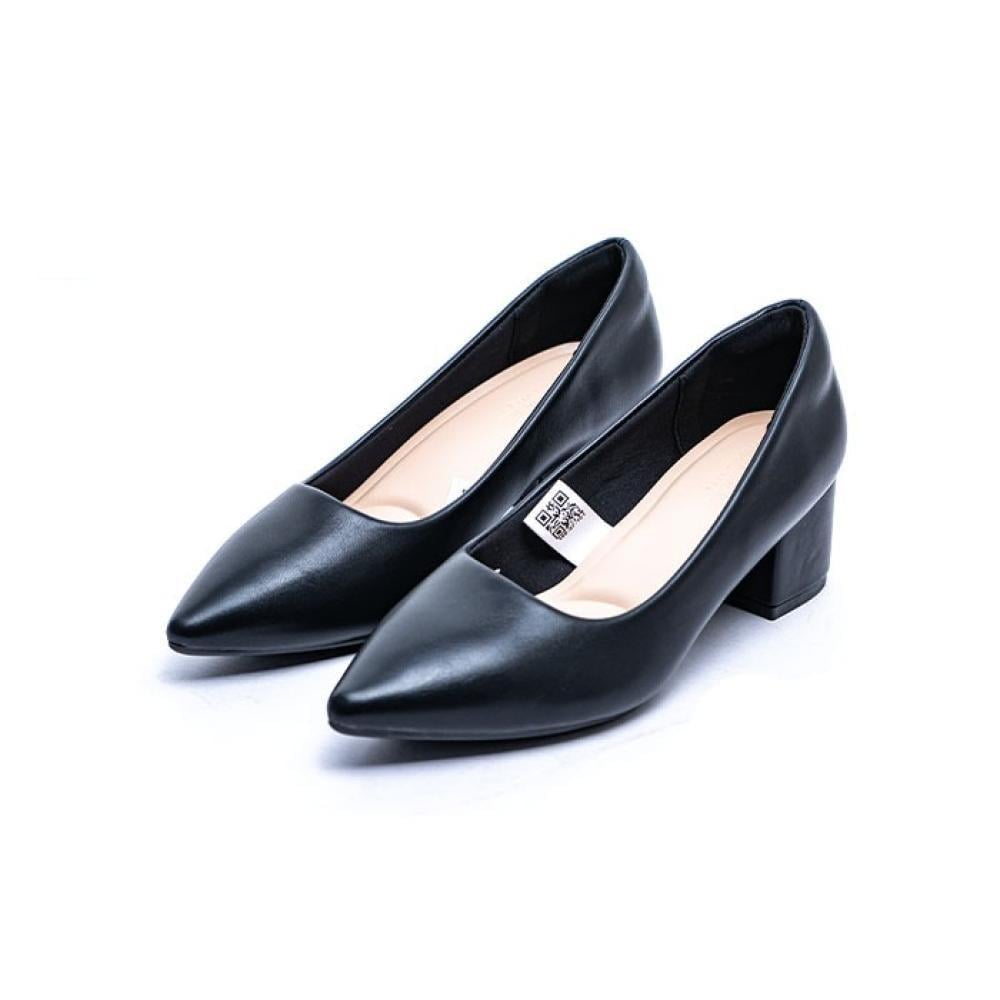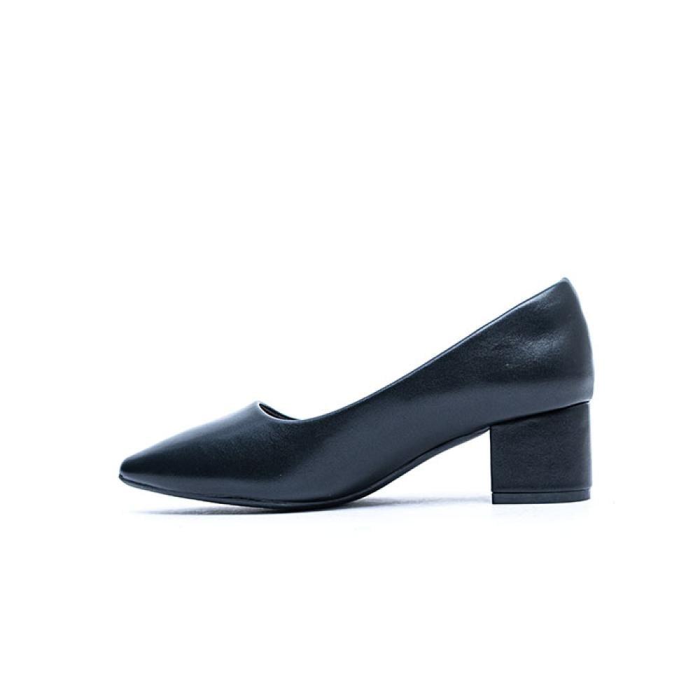 حذاء نسائي ذو مقدمة مدببة لامعة سهل الارتداء بكعب منخفض سميك ومريح للعمل من بوينت ون_37-101