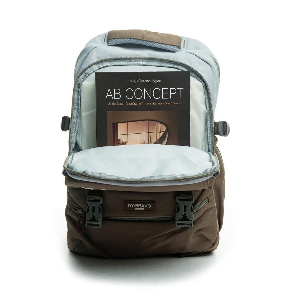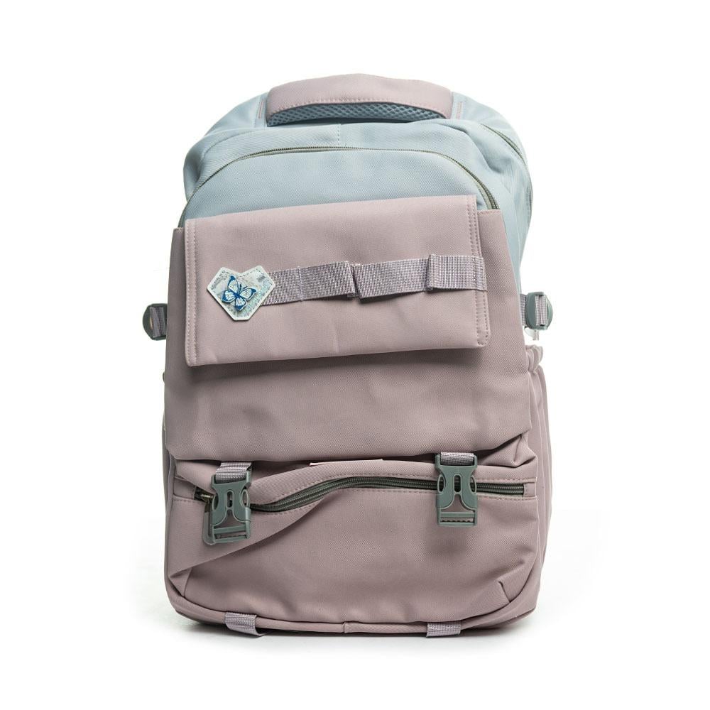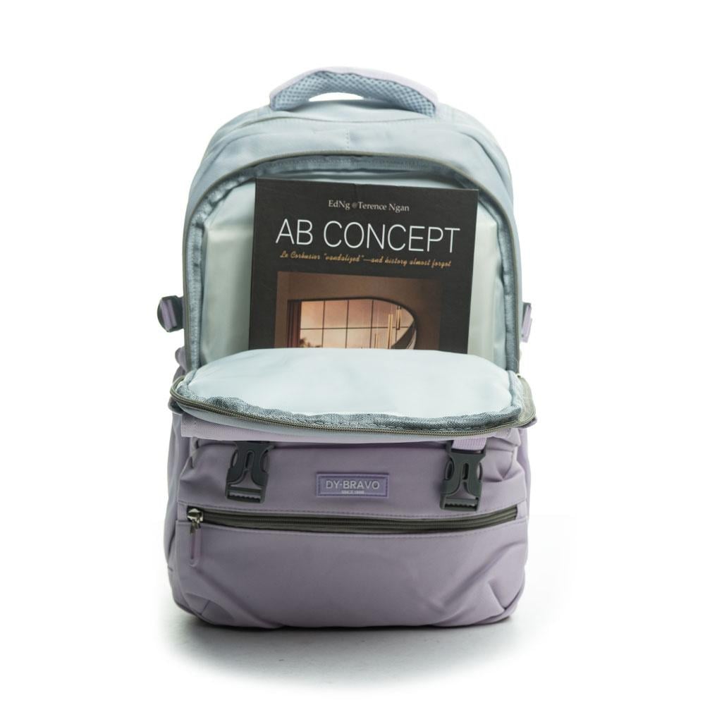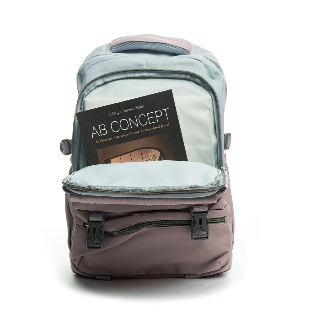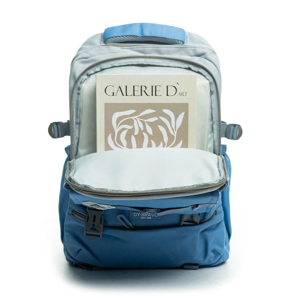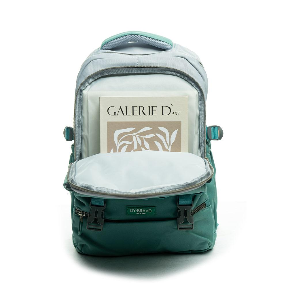 • جيب مزدوج مع جيبين أماميين، أحدهما مزود بمنظم للأقلام ومساحتين بأحجام مختلفة.