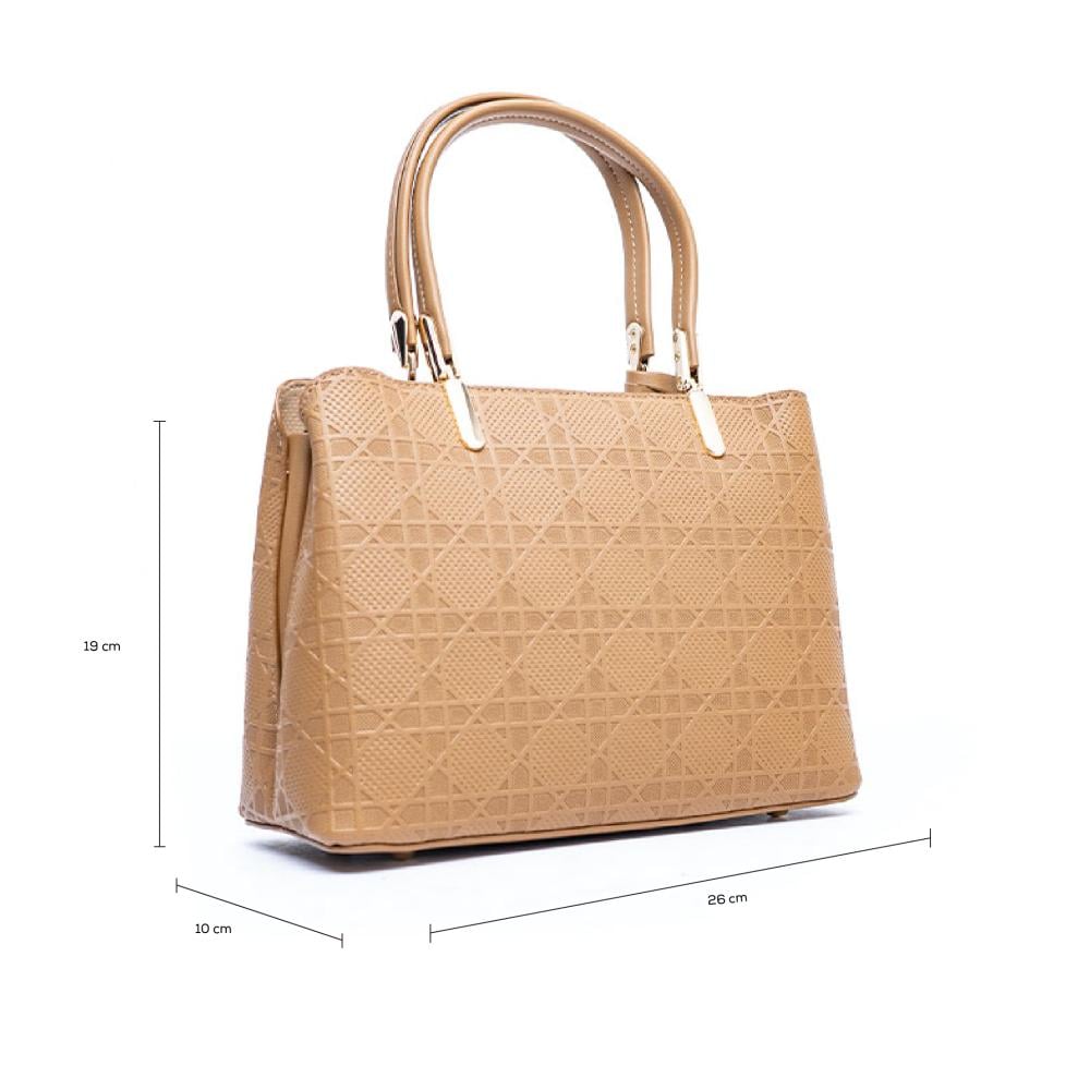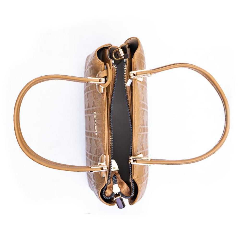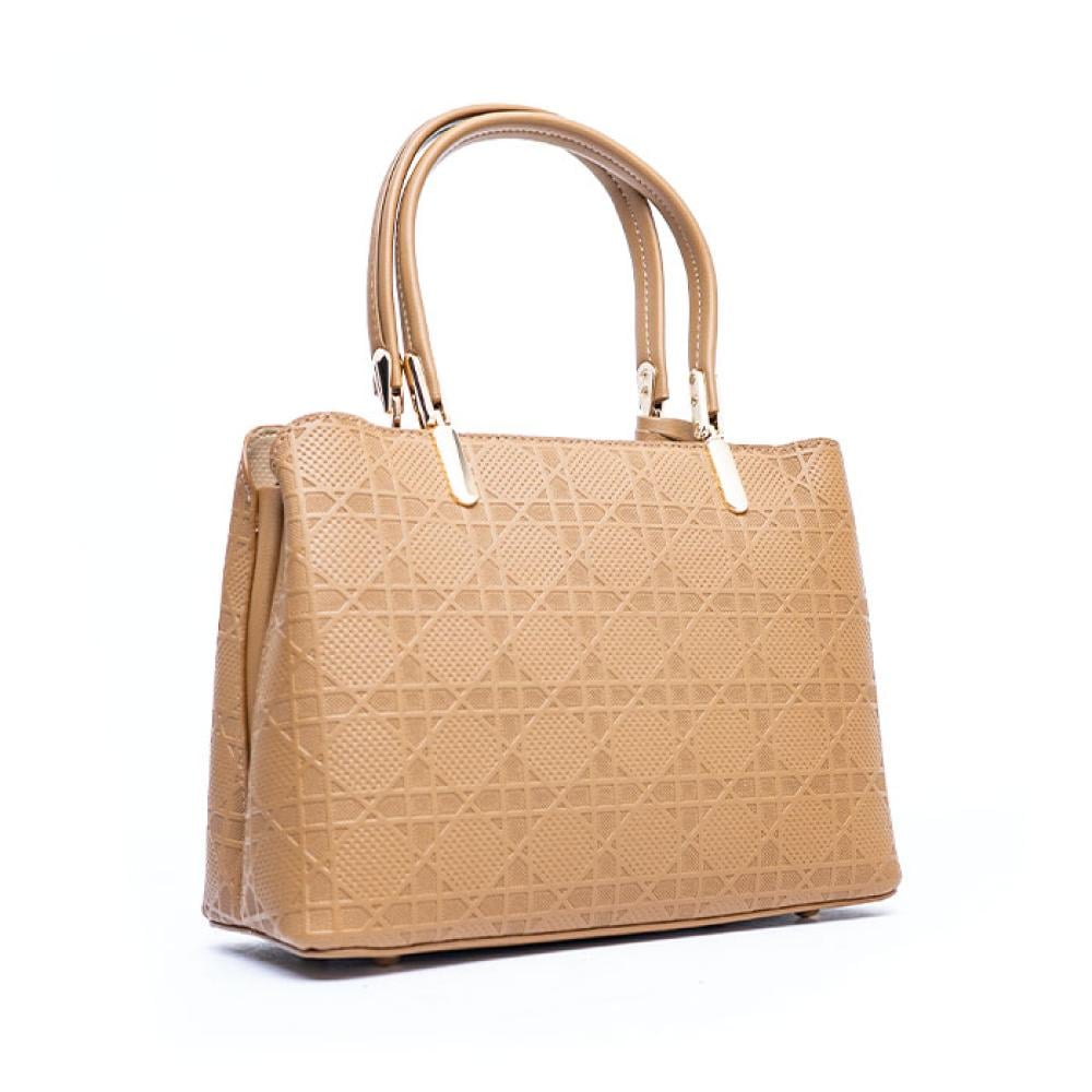 - المميزات: مساحة داخلية واسعة، سحاب للإغلاق الآمن، وإكسسوارات معدنية بلون ذهبي أنيق