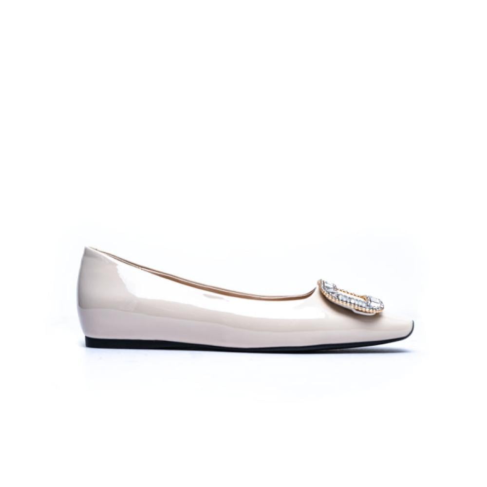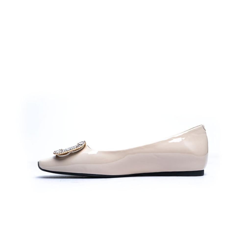 حذاء باليه نسائي مسطح مريح من الجلد اللامع بمقدمة مربعة ومقدمة مغلقة ومرصع بكريستالات_Q10-12