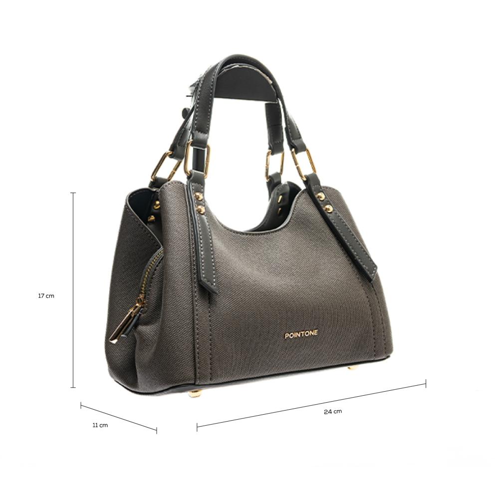 - المميزات: مساحة داخلية واسعة، سحاب للإغلاق الآمن، وإكسسوارات معدنية بلون ذهبي أنيق